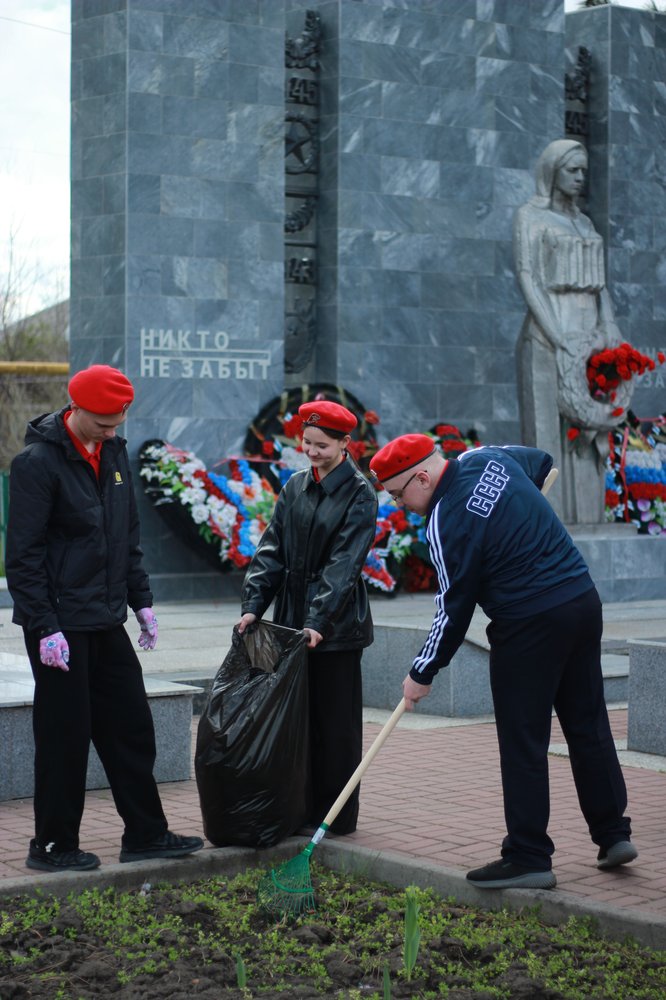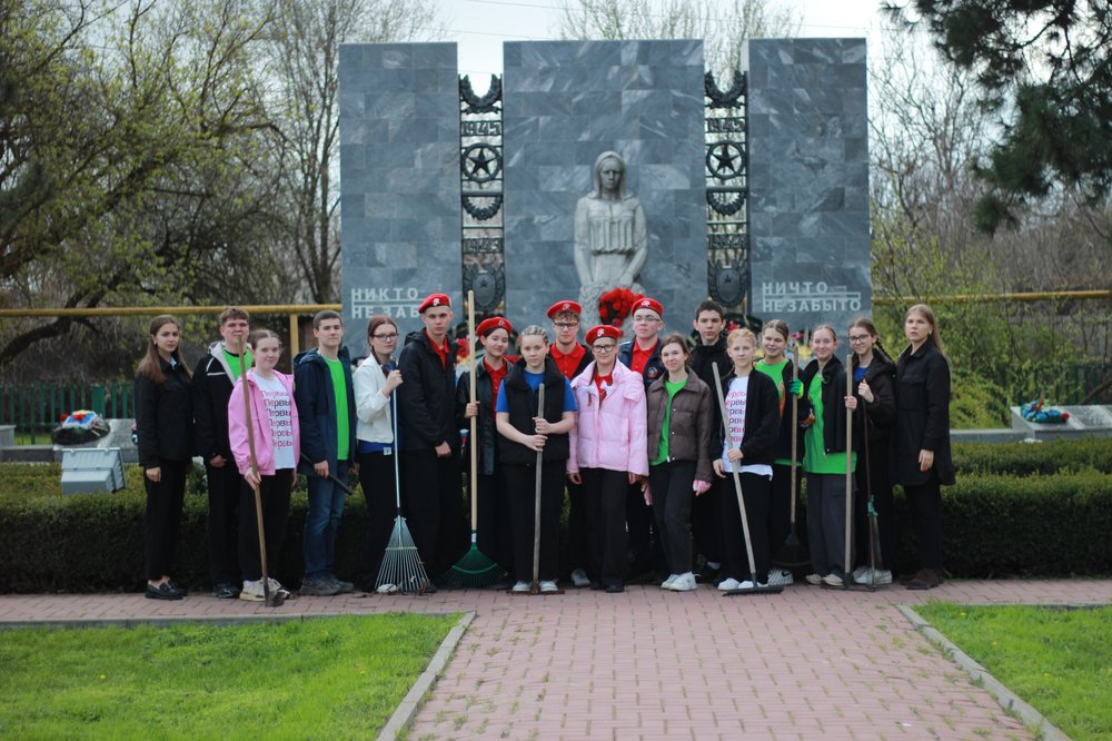 10 апреля в преддверии 81-й годовщины Победы в Великой Отечественной войне и в рамках патриотической акции «Дон Помнит» учащиеся средней общеобразовательной школы № 1 имени Б.Н. Куликова, в которую входят волонтерское движение «Взгляд в будущее», юноармейцы отряда «Патриоты России» и активисты местного отделения «Движение Первых» под руководством заместителя директора по воспитательной работе Сайко Д.А., руководителя юнармейского отряда Сологубовой Ю.А. и председателя первичного отделения Тарановой О.В. приняли участие в акции "Дон помнит".