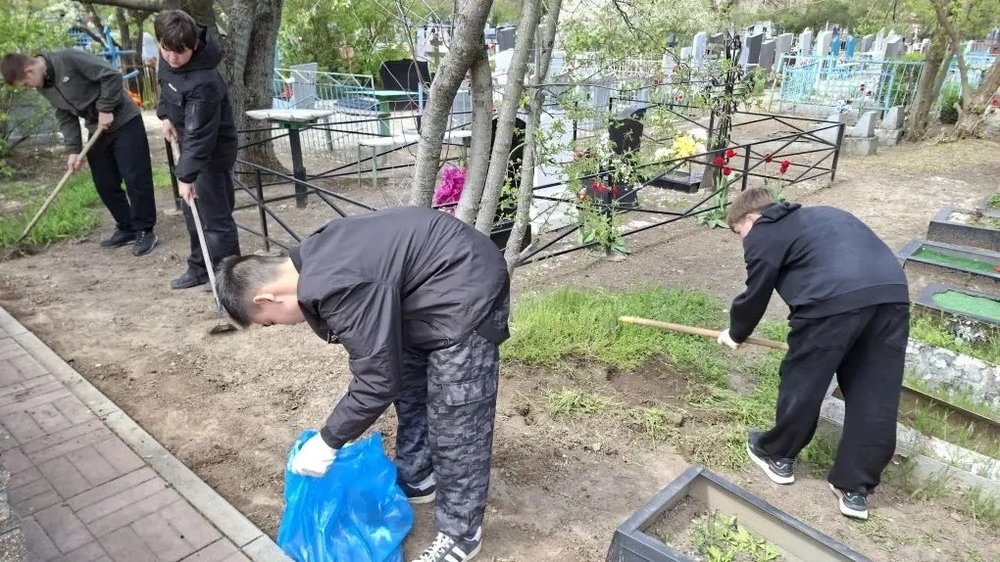 25 апреля, в преддверии 81-й годовщины Великой Победы, Первые средней школы № 3 им. И. А. Левченко г. Семикаракорска вместе с наставниками Баранчиковой И.А. и Слюсаренко Э.С. решили благоустроить братские могилы воинов на городском кладбище. Каждый человек обязан помнить о тех, кто жил для своей родины, своего народа и семьи и отдал за мирное завтра свою жизнь. Вокруг памятников под первыми лучами весеннего солнца выросла трава.